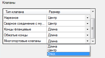 Для изометрических чертежей размеры между клапанами можно отключить в окне "Настройка проекта".