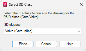 - Если класс объектов P&ID сопоставлен с несколькими классами Plant 3D, в диалоговом окне "Выбор класса Plant 3D" в списке "Классы 3D" выберите класс Plant 3D. Нажмите «Разместить».