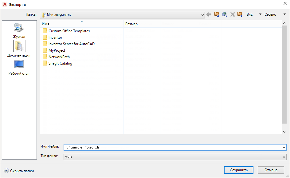 Сохранение настроек имени, пути и формата файла для экспорта.