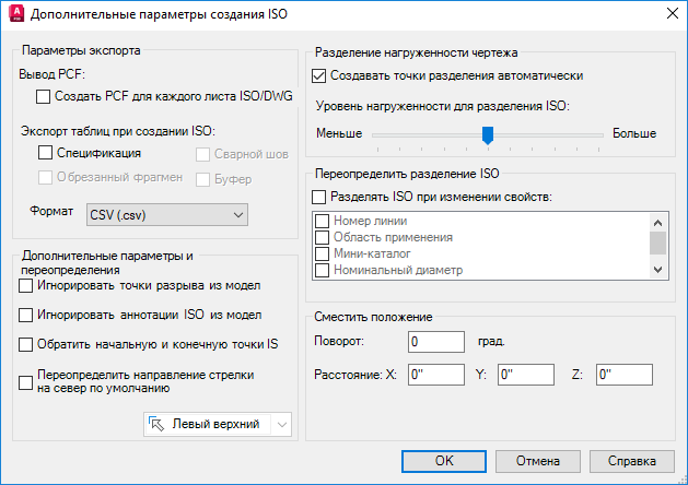 - Определение того, следует ли создавать единый файл PCF для каждого листа ISO или DWG.