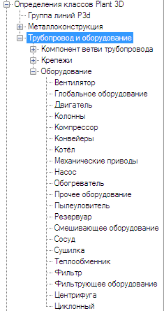 Продолжайте разворачивать список для того, чтобы найти и щелкнуть определение класса объекта Plant 3D (например, Трубопровод и оборудованиеОборудование).