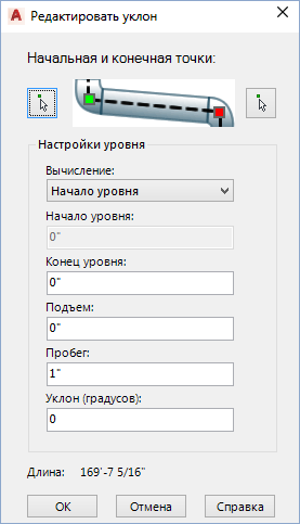 Позволяет задать метод вычисления уклона. На выбор можно задать новый начальный уровень, новый конечный уровень или вычислить новый уклон.