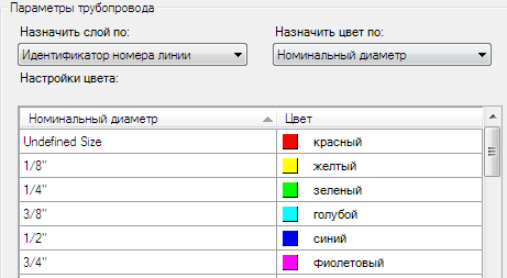 - Слой по миникаталогу трубы и цвет по размеру трубы