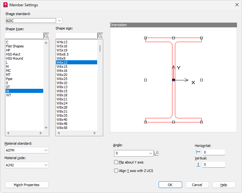 В списке "Стандарт материала" выберите требуемый стандарт материала, который будет использован для новых создаваемых элементов.