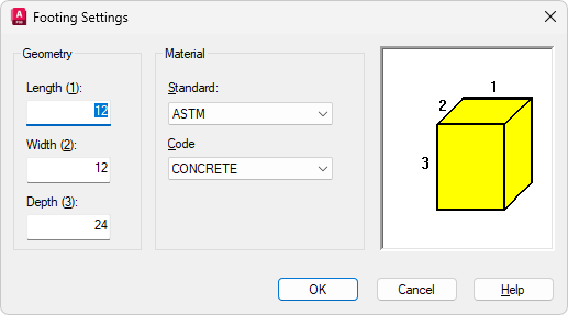 В диалоговом окне "Параметры фундамента" введите значения, которые будут использованы для новых фундаментов. Нажмите кнопку "ОК".