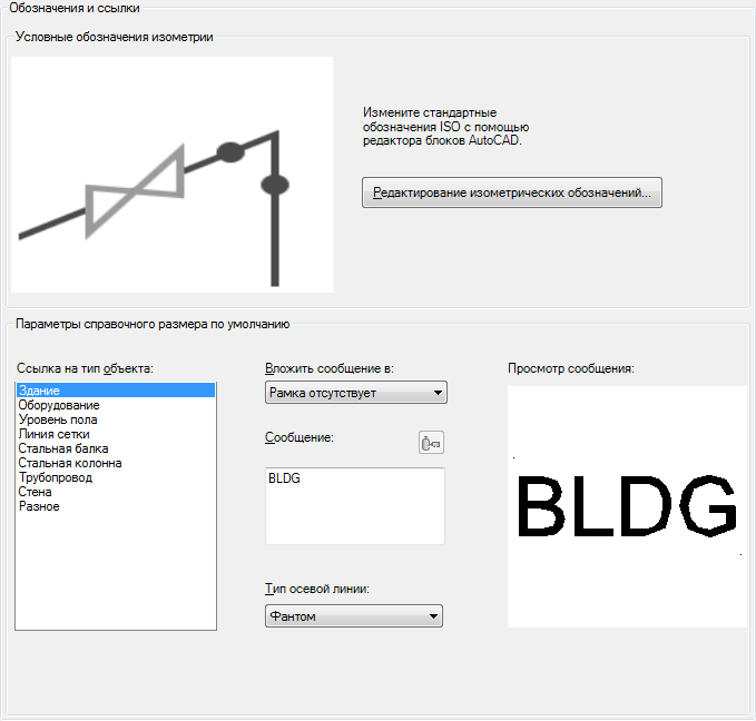 Редактирование обозначений, используемых при создании изометрических чертежей. Задание свойств и текста по умолчанию для справочных размеров ISO.