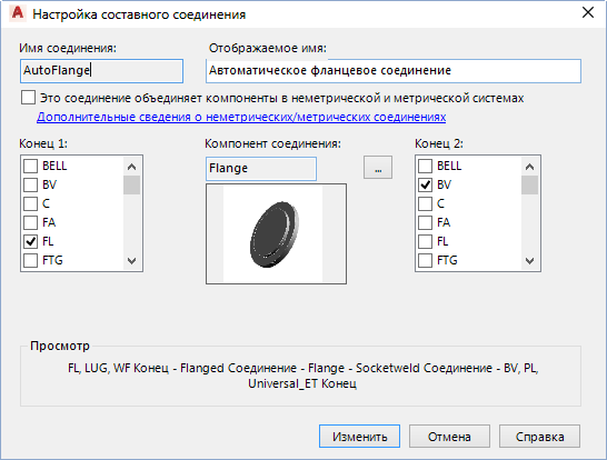 Если флажок в столбце установлен, соединение соединяет компоненты в неметрической (ANSI) и метрической (DIN) системах измерения.
