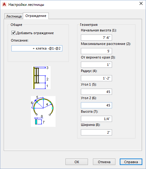 Используется для редактирования расстояния между вершиной лестницы и секцией клетки.