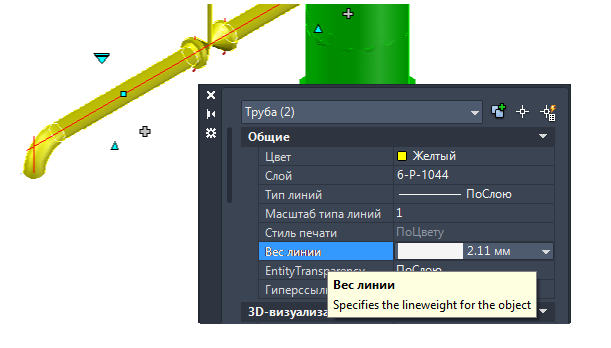 Задание веса для трубопровода в модели