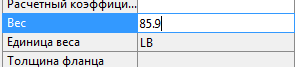 Прим.: В качестве единиц проекта для измерения веса всегда используются фунты или килограммы, а для погонного веса — фунт/фут или кг/м, в зависимости от единиц измерения проекта. При вводе значения веса задавать единицы измерения не требуется.