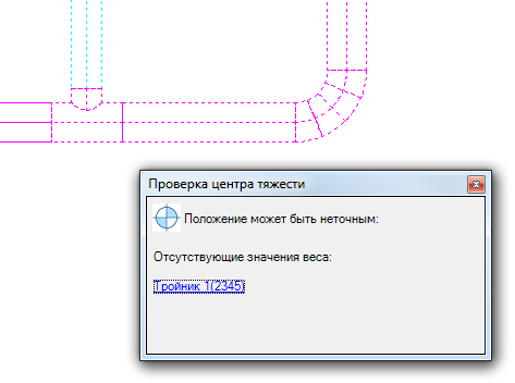 Отображается диалоговое окно "Проверка центра тяжести".
