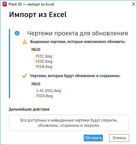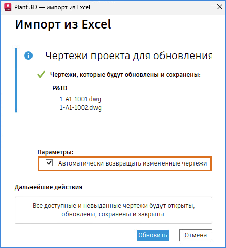 Если этот параметр не выбран, необходимо вернуть затронутые чертежи вручную.
