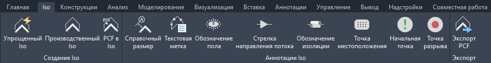 Вкладка "ISO" является частью рабочего пространства "3D трубопровод".