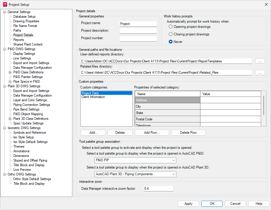 В разделе "Пользовательская информация" в списке "Пользовательские категории" щелкните "Данные проекта".