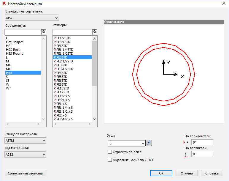 Используется для выбора профиля для конструкций.