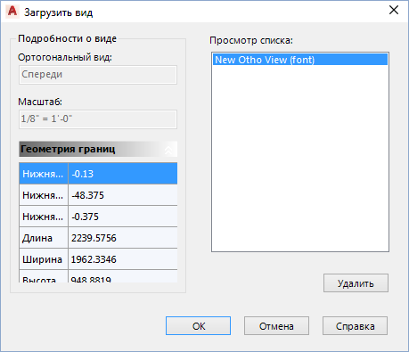 Используется для отображения списка доступных сохраненных ортогональных видов, которые можно загрузить во временный чертеж. Если щелкнуть дважды имя списка, это имя можно изменить.