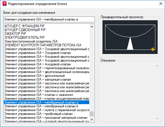 Прим.: Если вы копируете чертеж со старыми обозначениями ISA в новый проект, выполните команду SYNCHSTYLES, чтобы обновить обозначения в чертеже до последней версии.