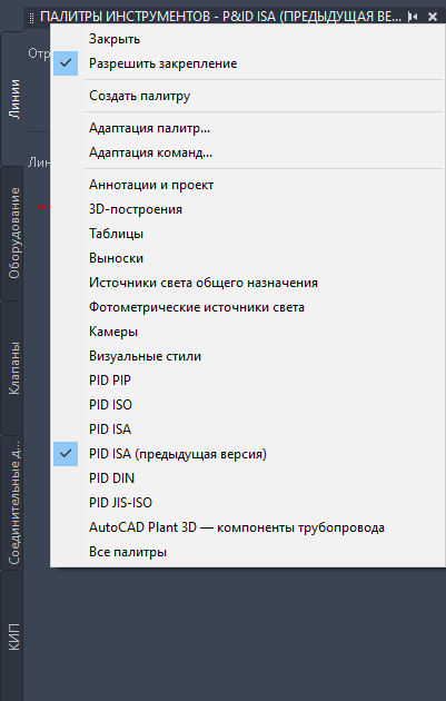 Вы можете работать со старыми обозначениями ISA, если не хотите обновлять их. Чтобы использовать в проекте старые обозначения ISA, выберите параметр «P&ID ISA (предыдущая версия)» на инструментальной палитре.