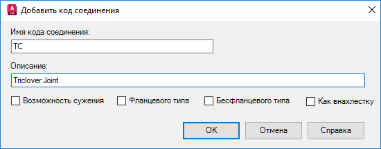 - Имена добавляемых кодов концевых соединений. Имя не должно содержать цифры или пробелы.