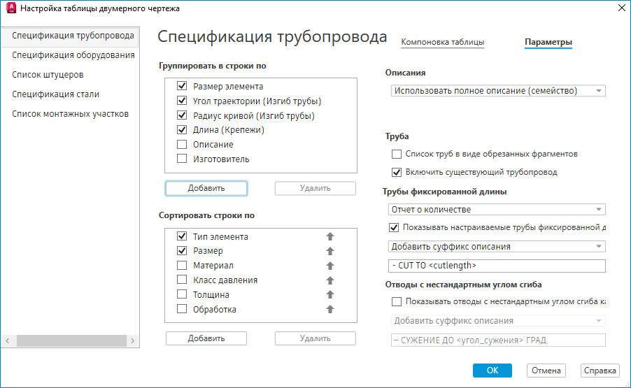 Задание файла стиля полного описания AutoCAD Plant 3D toolset (LDS), который определяет формат всех описаний в таблице. Можно задать описание размера или семейства.