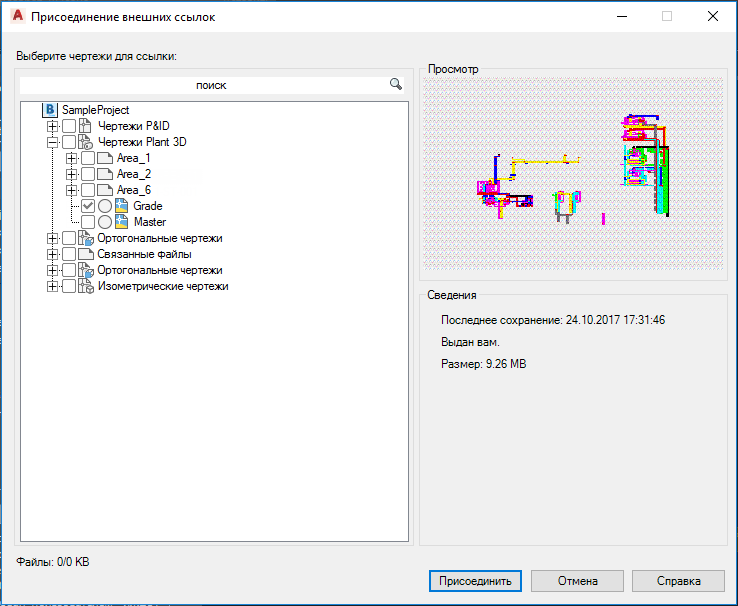 Присоединение файла чертежа проекта из совместного проекта.