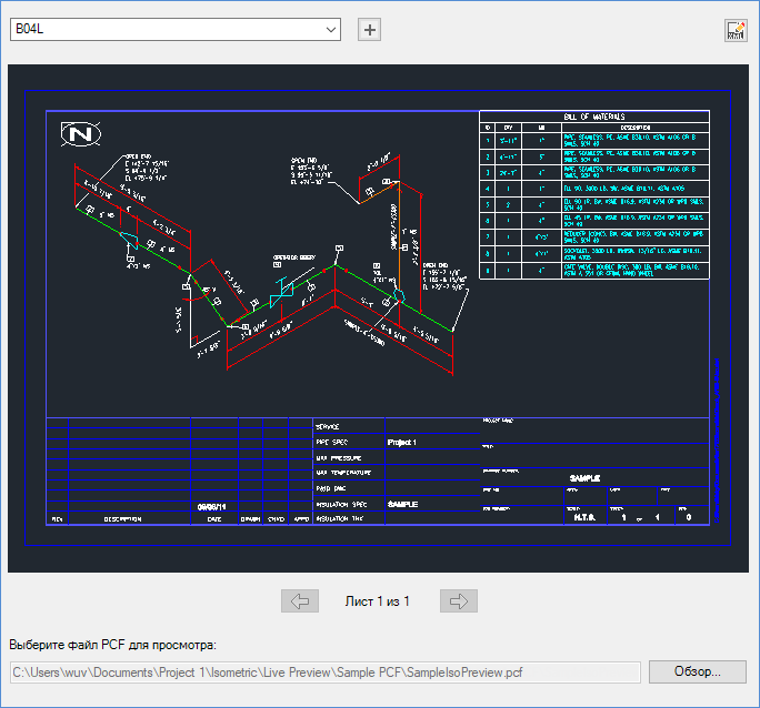 Определяет файл PCF, который используется в режиме динамического просмотра. Нажав кнопку "Обзор", можно указать другой файла предварительного просмотра.