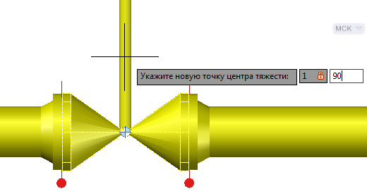 Задание положения центра тяжести трубопроводов, опор труб, оборудования и конструкций.