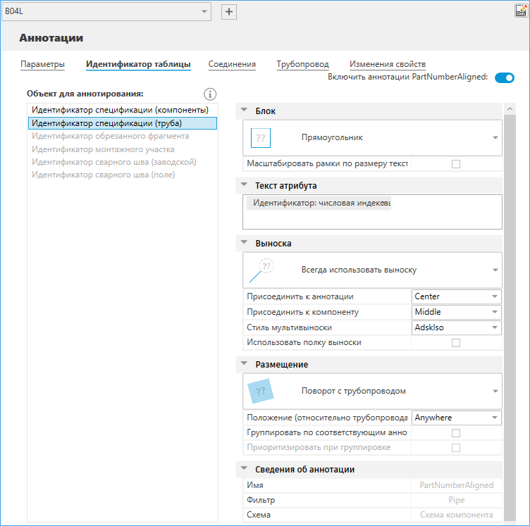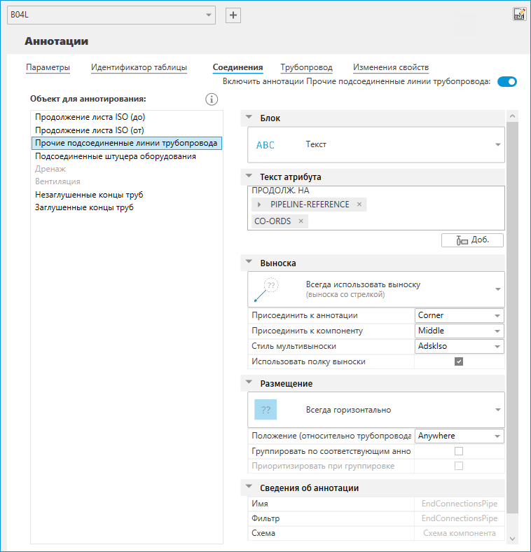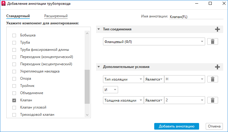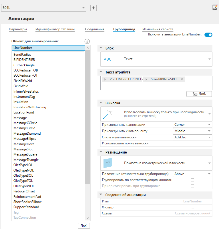 - В нижней части списка «Объект для аннотирования» нажмите «Добавить», чтобы добавить новую аннотацию трубопровода.