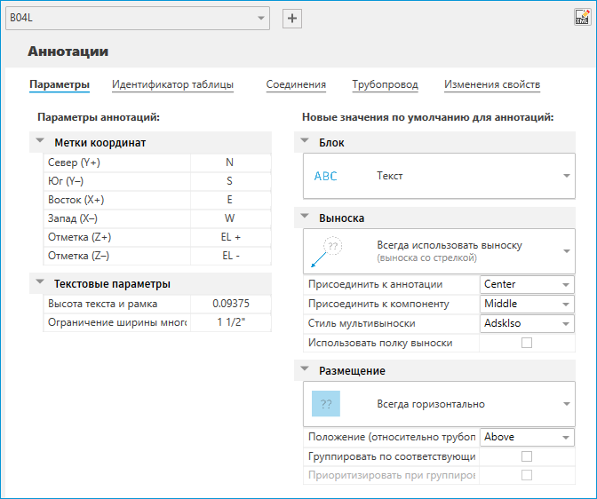 - Задайте параметры по умолчанию для новых аннотаций, например блок, стили выносок, размещение аннотаций и другие связанные параметры.