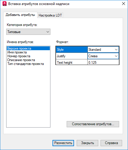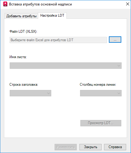 - В диалоговом окне «Вставка основной надписи» откройте вкладку «Настройка LDT» и выполните следующие действия.
