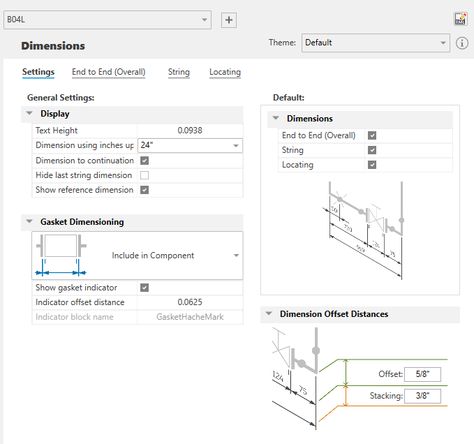 - В разделе «Нанесение размеров прокладок» укажите, требуется ли указывать размеры прокладок отдельно или же включить их в размеры компонентов. Если размер прокладки включен в компонент, можно указать, следует ли отображать индикатор прокладки, и задать смещение.