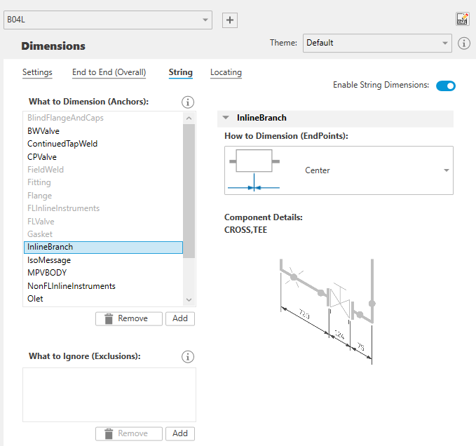 - Установите или снимите флажок «Скрыть последнюю цепочку размеров». При выборе этого параметра удаляется последний размер строки в линейном сегменте трубопровода, когда используются размеры от конца до конца для предотвращения чрезмерного ограничения размеров.