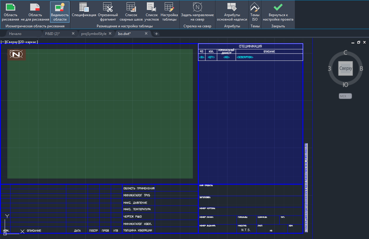 Задайте размер изометрических областей чертежа и укажите области для исключения.