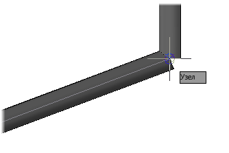 - Проведите курсором над открытым патрубком. Щелкните объектную привязку "Узел".