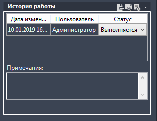 Прим.: Если диалоговое окно "История работы" не появляется во время открытия или закрытия чертежа, настройки проекта запрещают показ уведомления о ведении истории работы. Обратитесь к администратору проекта.