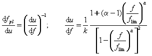 Для 0 < u < Dlim соотношение f = fpl(u) определено численно на основе обратного соотношения u = u(f), вычисляемого по формуле: