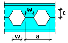 Шестиугольные отверстия с дополнительной прокладкой: c – высота среза; w – расстояние между отверстиями; hs – высота прокладки; a - шаг отверстий. |