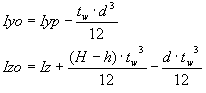 Моменты инерции по Y и Z относительно сечения, составленного только из полок:
