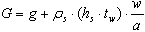 Вес сплошного сечения с прокладкой: g1 = g + rs * (H - h) * tw;