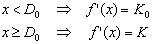 Параметры модели жесткой с линейным упрочнением, определенные для положительных аргументов x>0 (значение производной необходимо для определения жесткости).