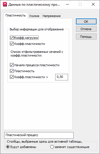 Список, представленный в таблице, можно дополнительно отфильтровать, критерием фильтрации является степень развития пластичности в сечении (значение коэффициента пластичности):