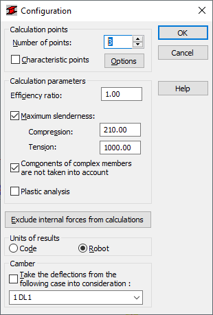 Если выбрать опцию Упругий расчет, программа Robot рассчитывает элементы, как указано в п.4.5 рассматриваемых норм. Общий алгоритм расчета основан на упругом расчете, который возможен только в исключительных случаях.