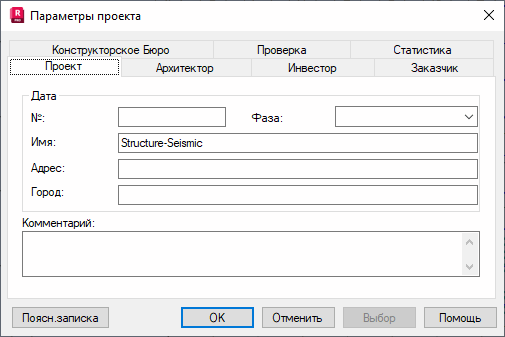 Вкладка "Проект" содержит основные редактируемые данные и комментарии по проекту. и для проекта.
