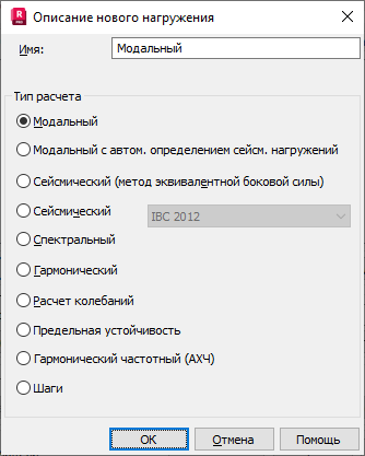Выбор типа результатов (динамические нагружения и нагружения потери устойчивости).