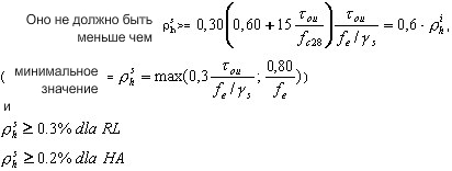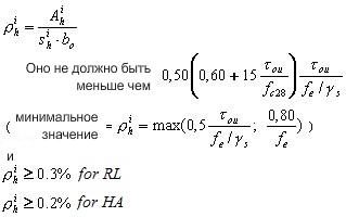 В случае, когда h > L, применяется равномерно распределенная арматура в зоне между L и 1,5 * L. Процент этой арматуры должен быть меньше максимального (0,5 * rhs; rhs (min)).