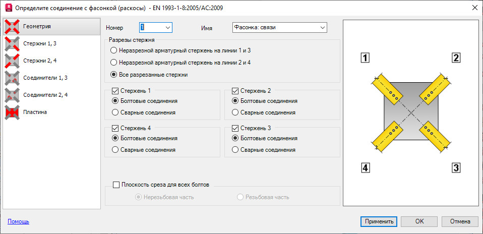 стержни, включенные в соединение;