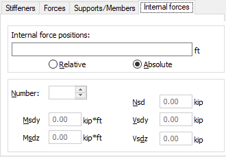 Для задания нового типа нагрузки нужно в поле Нагрузки выбрать функцию Вручную. С этого момента пользователь может задавать произвольные сосредоточенные силы, задавать ребра в произвольно выбранных местах и задавать внутренние силы, соответствующие указанной нагрузке. Значения внутренних сил должны быть заданы на вкладке "Внутренние усилия".