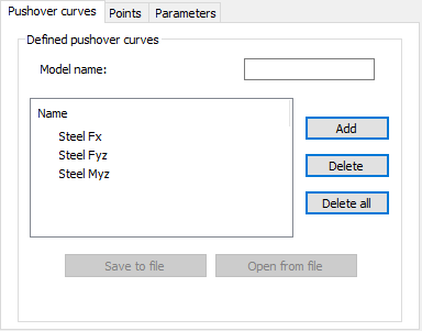 Как только в диалоговом окне Определение модели нелинейного шарнира выбрана вкладка "Кривые предельного равновесия," на экране появляется показанное ниже диалоговое окно.