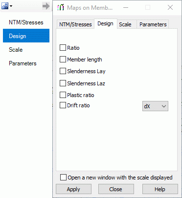 Так как в некоторых диалоговых окнах имеется очень много вкладок, они расположены по левой стороне окон. доступного сбоку диалогового окна (рисунок ниже иллюстрирует это на примере диалогового окна Карты для стержней).