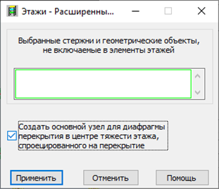В этом диалоговом окне можно выбрать элементы конструкции (стержни или геометрические объекты), которые будут игнорироваться при настройке параметров этажей.